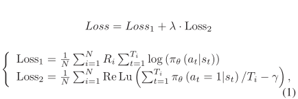 然后,这种奖励 $R_i$ 被反馈到损失函数中,如公式 (1),用来训练策略网络。